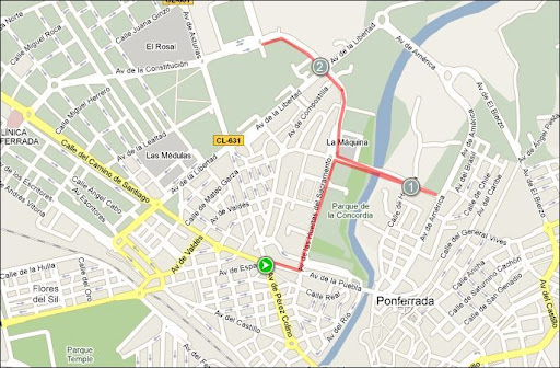 Dempois da saída situarse na praza de Lazurtegui (os primeiros tardarán 10' ou menos en pasar), logo do 1º paso por alí ir pola avda da Puebla, cando se chega á altura da avda das huertas esperar o paso dos corredores e logo botar a andar por esa avda cara á praza das pementeiras, alí ver un novo paso dos corredores. Cruza-la ponte "dos faraons" (reino de Leon) ata a avda de América e ver alí o paso da 2ª volta dos corredores, logo voltar ata a avda das Huertas (xa non ves pasar ós primeiros -ou si, si levas bici- pero voltas a ver os corredores) e subir cara á rotonda "da conecha" (donantes de sangre -marcado cun 2 no mapa-) e alí podes ver un dobre paso dos corredores ou seguir ata a meta.